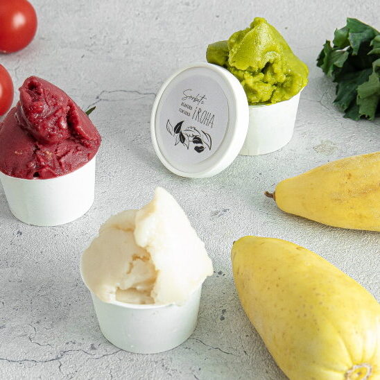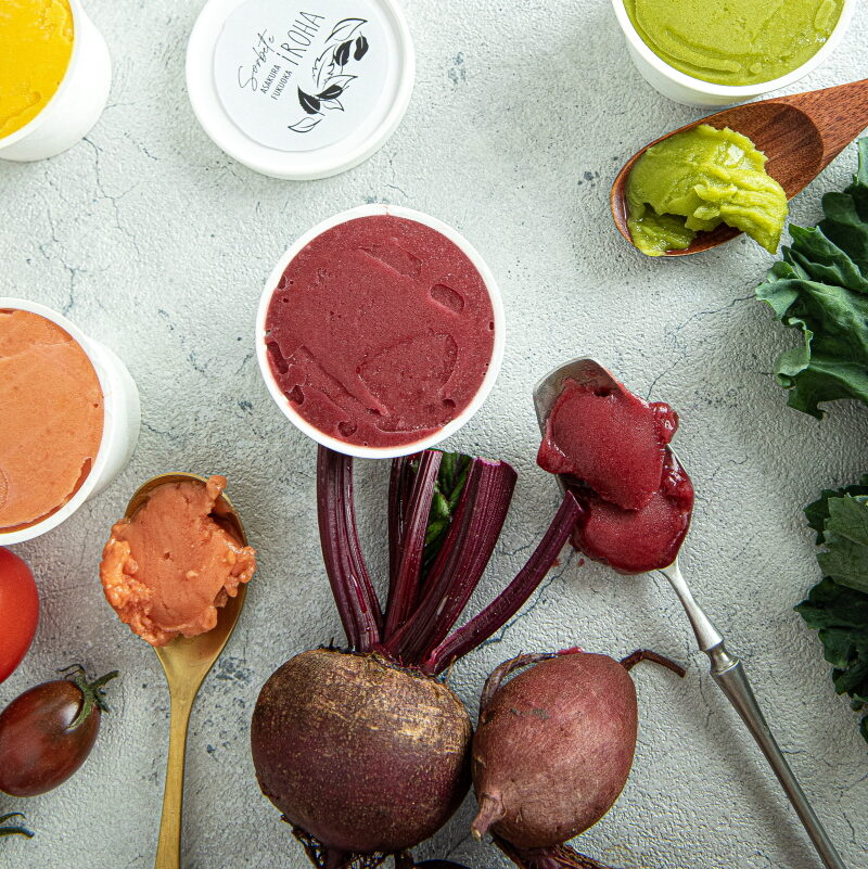 近隣の農家さんが栽培した野菜や果実も取り入れて美味しいソルベを作っていますので、ぜひ、味わってみてください。